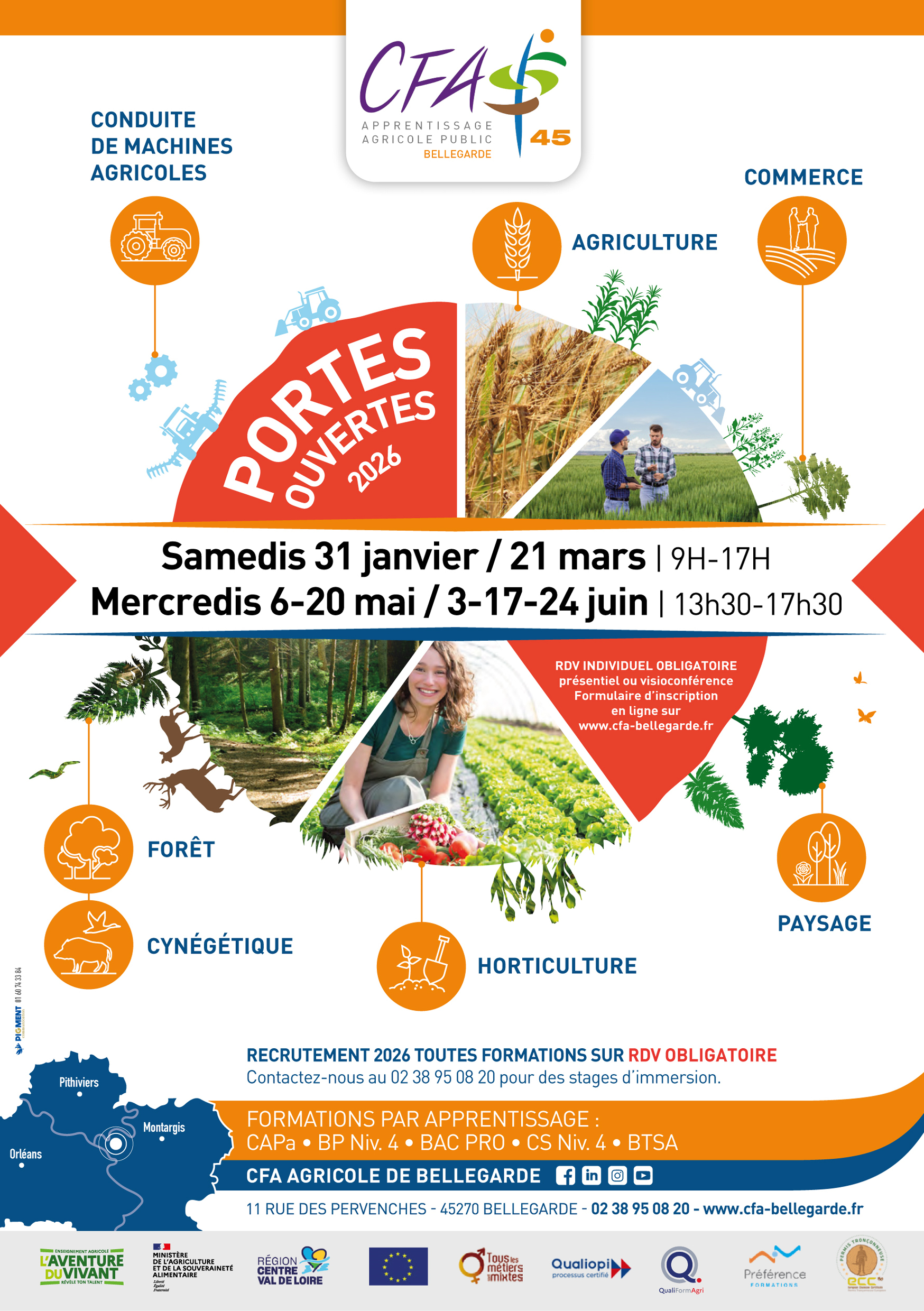 CFA AGRICOLE DU LOIRET DE BELLEGARDE : Journée Portes Ouvertes 2026